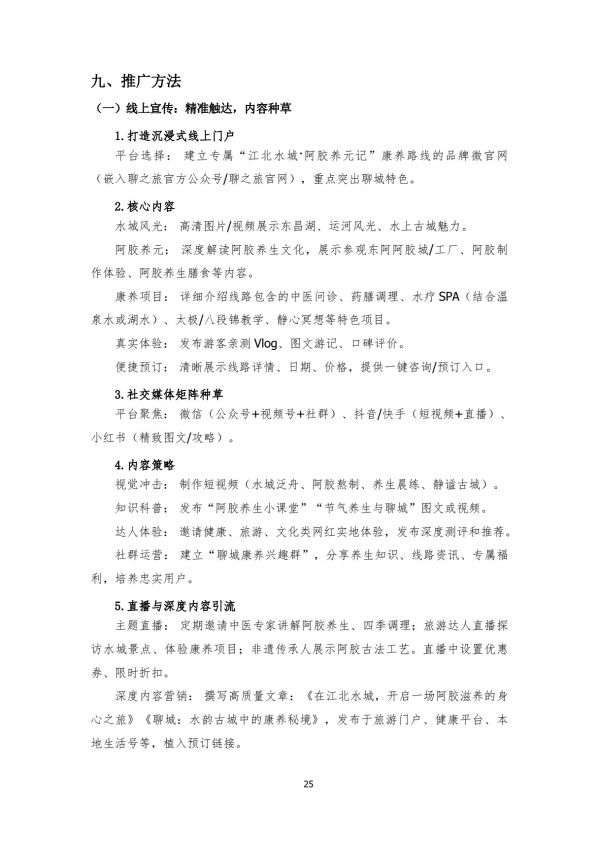 平臺(tái)選擇:建立專屬“江北水城·阿膠養(yǎng)元記”康養(yǎng)路線的品牌微官網(wǎng)(嵌入聊之旅官方公眾號(hào)/聊之旅官網(wǎng)),重點(diǎn)突出聊城特色。