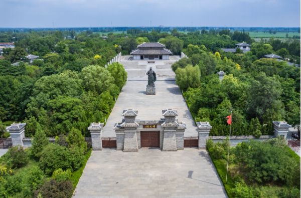 后游覽【蚩尤陵】,蚩尤陵位于山東省聊城市陽(yáng)谷縣十五里園鎮(zhèn),是為紀(jì)念上古部落首領(lǐng)蚩尤而建的文化遺存,由首級(jí)冢與陵園組成。陵園由錢運(yùn)選規(guī)劃設(shè)計(jì),占地105畝,中軸線分布陵門、蚩尤銅像(高10.8米)、祭壇等九座建筑 。據(jù)《漢書》《史記》等記載,蚩尤戰(zhàn)敗后首級(jí)葬于東平郡壽張縣闞鄉(xiāng)。