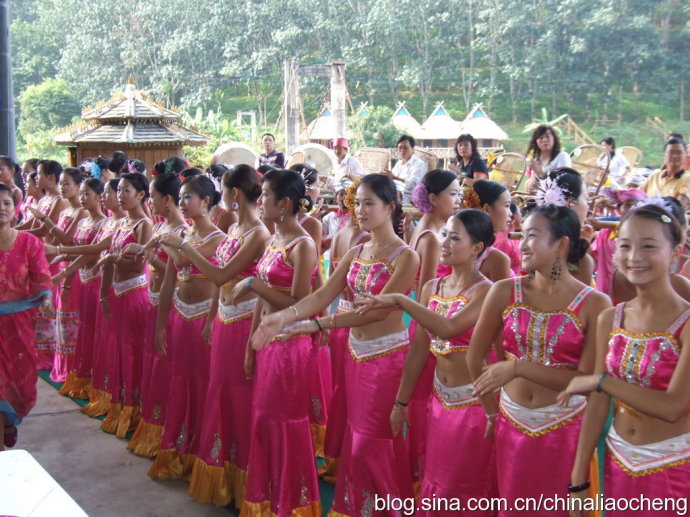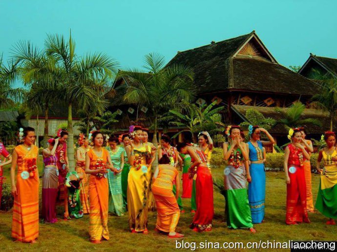 傣族是西雙版納人口最多的少數(shù)民族,有精巧的竹樓,優(yōu)美的孔雀舞。傣族少女服飾精美、容姿秀麗、能歌善舞,是西雙迷人的景致之一。傣族人居住的竹樓是一種干欄式建筑。竹樓近似方形,以數(shù)十根大竹子支撐,懸空鋪樓板;房頂用茅草排覆蓋,竹墻縫隙很大,既通風又透光,樓頂兩面的坡度很大,呈“A”字形。竹樓分兩層,樓上住人,樓下飼養(yǎng)牲畜,堆放雜物,也是舂米、織布的地方。傣族男子一般上穿無領對襟袖衫,下穿長管褲,以白布或藍布包頭。傣族婦女的服飾各地有較大差異,但基本上都以束發(fā)、筒裙和短衫為共同特征。筒裙長到腳面,衣衫緊而短,下擺僅及腰際,袖子卻又長又窄。