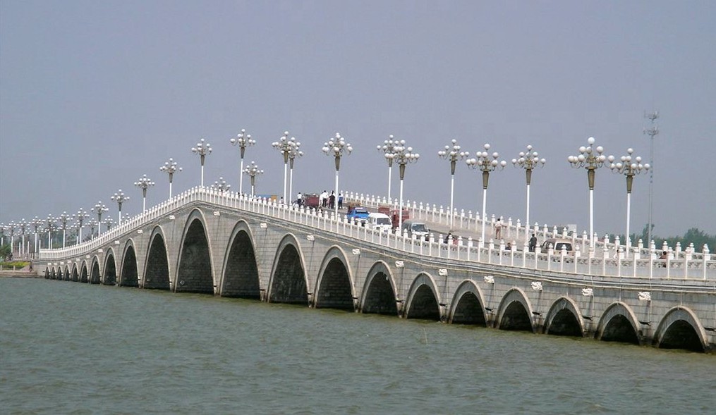 東昌湖水域面積6.3平方公里,與杭州西湖相當,是南京莫愁湖的18倍;平均水深3米,蓄水量是杭州西湖的2倍。“一湖翡翠千重秀,清風瀲滟蕩古城。”您現(xiàn)在看到的就是風光旖旎、聞名遐邇的東昌湖,東昌湖又稱胭脂湖,中國古典名著《聊齋志異》中的一篇胭脂的故事就發(fā)生在這里。東昌湖始掘于宋熙寧三年,筑城取土而成,城外自然成河,恰似一條美麗的玉帶環(huán)繞古城。它與杭州西湖、南京莫愁湖并譽為我國三大美女湖。東昌湖是一個美女湖,可是有根據(jù)的哦,在《聊齋志異》中,傳說東昌湖是美女胭脂浣紗的地方。說起東昌湖的成因,也與美女有著不解之緣,相傳很久以前聊城一帶下起了滂沱大雨,平地一片汪洋,在城南百余里處黃河又決了口,圍著城池沖出一個湖來,遼闊無邊,深不可測。有一年王母娘娘和玉皇大帝帶著仙女仙童云游至此,見這偌大湖面清澈透明,映出五彩霞光,留戀多時不肯離去。這時隨行而來的雌凰仙子看出了王母和玉帝的心思,于是奏道:"如此數(shù)千畝碧波勝過天庭瑤池,何不令小仙在此種花植樹、建亭設(shè)苑以供游憩之用?"王母、玉帝應允了此事,從此雌凰仙子留于當?shù)?,湖中于是有了六角攢尖飛檐亭,奇花異草遍布,岸邊則綠樹成陰,柳浪翻滾。如今的胭脂和仙女都已遠去,不過煙波浩淼的湖泊,流光溢彩的河流,成為這座城市富貴的財富。二十世紀九十年代以前,東昌湖岸邊雜草叢生,沼澤滿地,垃圾隨處傾倒。東昌湖像一位蒙塵蒙垢的少女,靚麗的風姿蕩然無存。九十年代后,巧借京九鐵路、邯濟鐵路、濟聊館高速公路三路建設(shè)用土,新建聊城電廠用水,投入資金1.1億元,對東昌湖進行清淤整治。可以這樣說,在中國江北,還沒有哪一座城市擁有這樣多的水,它南依黃河,是中華母親河的乳汁滋潤了這片肥沃的土地。綜觀聊城全境,流域面積在30平方公里以上的河流有23條,其中100平方公里以上的有3條。黃河在南部奔騰咆哮東去,古運河從中部蜿蜒曲折穿過,衛(wèi)河從西部挾風裹浪北流;馬頰河、徒駭河縱橫交錯,東昌湖、魚丘湖交相輝映。僅聊城市區(qū),湖、河水域面積就多達13平方公里,占市區(qū)總面積的三分之一,這一優(yōu)勢是中國江北許多城市無法比擬的。城中有水,水中有城,城水一體,交相輝映的山東聊城,不愧為中國長江以北的第一水城。