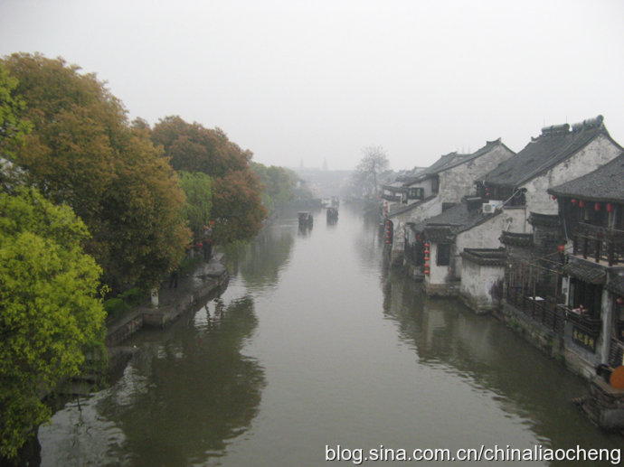 站在橋上遠眺,西塘的水、路、棚廊以及模糊的黛瓦粉墻在斜陽的暈染下,如淡彩的宣紙畫;古鎮(zhèn)彎彎曲曲的弄堂,平平仄仄的石板,瘦瘦清清的小河,高高低低的石橋,如泛黃的照片在記憶里層層清晰。這樣遠遠近近的望著,目光沾染了水的痕跡,醉成濕漉漉的癡情。夕陽斜下,橋下嫣紅的水面隨櫓的搖晃灑下一串串晶瑩剔透般的珍珠,小船兒蕩蕩悠悠地劃著,橋的影子在細細碎碎的水聲中被一波一波的漣漪輕柔地化開,亦真亦幻而又忽明忽暗,仿佛歲月的印痕在自然的畫面中流動,樹影、船影、橋影,晃動著,漸漸隱去。