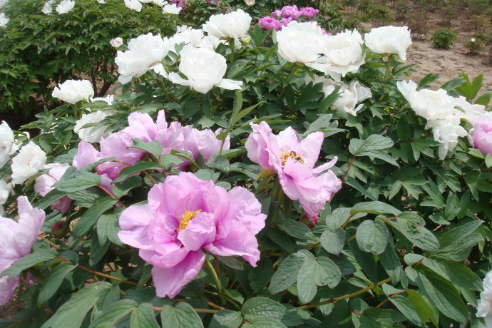 百花園面積一百畝,植牡丹十二萬多株,560個品種,芍藥六萬余株,270多個品種,以傳統(tǒng)稀有珍貴品種多,花色齊全,分布合理便于觀賞而馳名。同時培育出牡丹新品種賽雪塔、春紅嬌艷、銀紅球、百園粉等數(shù)十種,具有很高的觀賞價值。因而百花園又有“品種園”之稱。十幾年來,百花園牡丹不僅在杭州、蘇州、廣州、上海等城市舉辦大型牡丹展,而且與日、美、新加坡、荷蘭、臺灣等國家和地區(qū)開展交流,引進日本的金寶、金閣、花王、太陽等品種。百花園東倚220國道,南靠市區(qū),交通方便。