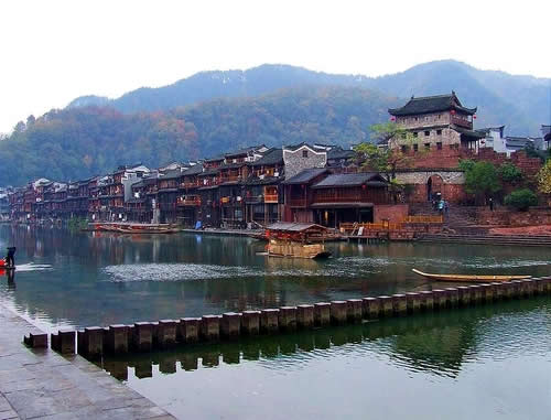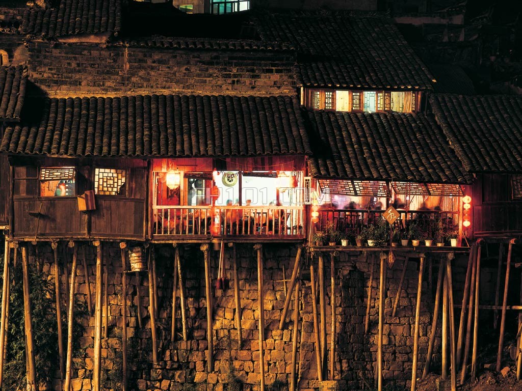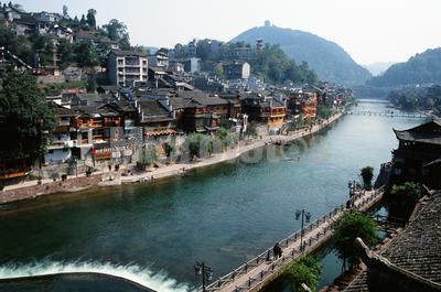 鳳凰古城始建于清康熙四十三年〔1704年〕,歷經(jīng)300多年的風(fēng)雨滄桑,古貌猶存?,F(xiàn)東門和北門古城樓尚在。城內(nèi)青石板街道,江邊木結(jié)構(gòu)吊腳樓,以及朝陽宮、古城博物館、楊家祠堂、沈從文故居、熊希齡故居、天王廟、大成殿、萬壽宮等建筑,無不具古城特色。古城以古街為中軸,連接無數(shù)小巷,溝通全城。古街是一條縱向隨勢成線、橫向交錯鋪砌的青石板路,自古以來便是熱鬧的集市,如今更加生機勃勃。鳳凰古城的標(biāo)志性建筑之一虹橋,原名臥虹橋,歷史悠久。鳳凰古城北門城樓本名“碧輝門”,采用紅砂條石筑砌,既有軍事防御作用,又有城市防洪功能,是古城一道堅固的屏障。鳳凰古街兩邊建筑飛檐斗拱,店鋪陳設(shè)著琳瑯滿目的民族工藝品,濃濃的古意古韻,透出古街深厚的民族文化底蘊。