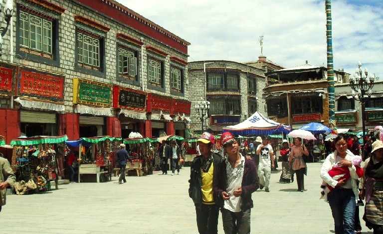 15世紀(jì)后,大昭寺成為佛教傳播的中心,其周圍相繼出現(xiàn)僧人宿舍、宗教學(xué)校、小寺廟建筑,眾多信佛者遷居大昭寺周圍生活,街上逐漸出現(xiàn)了大量民居、店鋪、旅館、手工作坊等設(shè)施。隨大昭寺宗教地位的加深,藏傳佛教認(rèn)為,以大昭寺為中心順時(shí)針繞行為“轉(zhuǎn)經(jīng)”,表示對(duì)供奉在大昭寺內(nèi)釋迦牟尼佛像的朝拜,八廓街成為拉薩三大轉(zhuǎn)經(jīng)道(大轉(zhuǎn)、中轉(zhuǎn)、小傳)之一。后又出現(xiàn)了來(lái)自蒙古、漢地、克什米爾、尼泊爾、不丹、印度等地區(qū)和國(guó)家的眾多商販、香客、游民,發(fā)展成為集宗教街、觀光街、民俗街、文化街、商業(yè)街和購(gòu)物街于一身的街區(qū)。