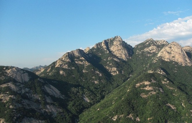 北漢山位于韓國(guó)首都首爾北面,其名字意為北面最大的山,也被稱為三角山、負(fù)兒岳。巨大花崗巖形成陡峭曲線是北漢山的最大特點(diǎn),高聳的巖峰和巖峰間流淌著的清澈溪谷斷然可見。山峰千姿百態(tài),其中有836.5m的白云峰,巖峰和樹木之間生存有1,300余種動(dòng)植物。巖峰中的第一高峰是仁壽峰的奇巖,世界聞名的懸崖仁壽峰達(dá)200m以上,光是路線就有100多個(gè)。站在白云臺(tái)頂上,透過(guò)云層,漢城和漢江一收眼底。