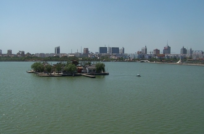 東昌湖始建于宋熙寧三年(公元1070年),在原護城河的基礎(chǔ)上經(jīng)歷代開挖而成,現(xiàn)有水域4.2平方公里,為中國江北地區(qū)罕見的大型城內(nèi)湖泊。東昌湖引黃河水為源,常年水深3-5米,湖水清澈,無任何工業(yè)污染;景色宜人,令游客流連忘返。東昌湖中心是已有千年歷史的1平方公里的正方形聊城古城。古城風貌保存完好,以古城正中的光岳樓為中心,向四面輻射,形成東西南北四條古城區(qū)干道,其它大街小巷,也都是經(jīng)緯分明,垂直交叉,形成棋盤方格網(wǎng)狀骨架。