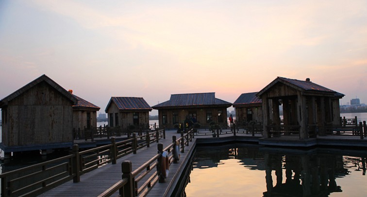 江北水寨位于聊城古城西側(cè),中國垂釣基地南面,整個水寨采用竹木結(jié)構(gòu),保留本色,全部建筑浮于湖水碧波之上,總建筑面積640余平方米。