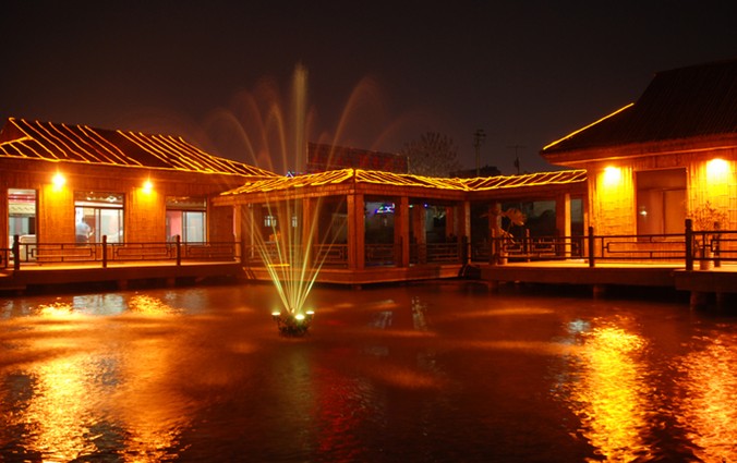 江北水寨系東昌湖綜合開發(fā)的重點項目之一,在借鑒眾多湖上竹寨建筑風(fēng)格和模式的基礎(chǔ)上,結(jié)合東昌湖自身特點,大膽進(jìn)行了調(diào)整和改善,使其布局更加合理,形式更加活潑,功能更加齊全,風(fēng)格更具特色。版權(quán)所有山東聊城聊之旅國際旅行社有限公司,轉(zhuǎn)載必究!整個建筑由棧橋、回廊、亭臺軒榭組成。內(nèi)置可容70余人的餐會廳一座,另有10間餐廳、其中5間可供游人作為垂釣包廂,前后門貫通,面湖可放鉤垂釣,大廳與包廂之間棧橋相連,中間為一露天廣廳,可供游客輕歌漫舞。江北水寨樓臺軒榭,互相映襯,湖光城影,相映成趣,建筑風(fēng)格古樸典雅、錯落有致,極具江南水鄉(xiāng)之風(fēng)彩。