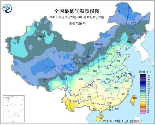 中央氣象臺2011年12月11日17時發(fā)布未來三天全國天氣預報:南部海域有大風 較強冷空氣將影響中東部!