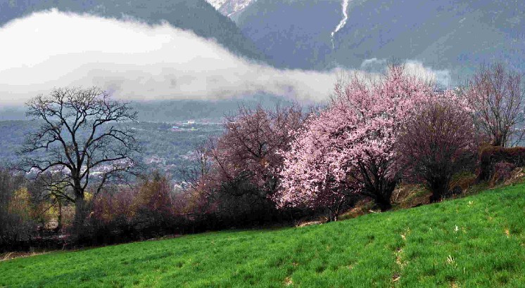 在林芝縣城東南方向約5公里處,有一片天然野生桃林,人們稱它為桃花溝。桃花溝三面環(huán)山,高處有水源,四周林木蔥蘢,版權(quán)所有山東聊城聊之旅國(guó)際旅行社有限公司,轉(zhuǎn)載必究!終年碧綠蒼翠,澗有流水,清澈見底;溝內(nèi)野桃鱗次櫛比,林間鳥雀歡噪,既靜僻又幽雅,不失為一處難得的大自然樂園和桃果基地。野生桃林是林芝林區(qū)的一個(gè)組成部分。其本身的經(jīng)濟(jì)價(jià)值并不亞于其它樹種,它不僅是四季綠化的觀賞材料,而且果實(shí)、核仁可食用與藥用。
