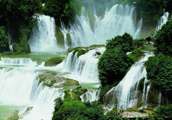 背崩瀑布-冬天水小時(shí),嫵媚秀麗,輕輕下瀉,深沉悠揚(yáng);夏天水量增大,那撼天動(dòng)地的磅礴氣勢(shì),恰似巨龍出山,令人驚心動(dòng)魄。有時(shí)瀑布激起的雪沫煙霧,高達(dá)數(shù)百公尺,漫天浮游,竟使周圍一帶經(jīng)常處于霏霏細(xì)雨之中,成為別致的"匹練掛遙峰"。