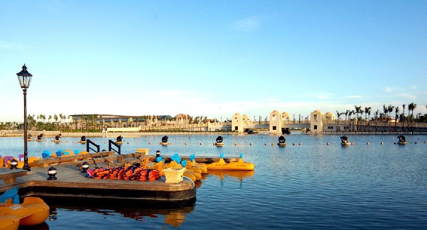 “融和門”是由四根高40米的支柱,版權(quán)所有山東聊城聊之旅國際旅行社有限公司,轉(zhuǎn)載必究!兩兩一組互勾而成。支柱為鋼筋骨架,混凝土澆注;支柱表面鋪設黑色花崗巖及葡式碎石。四周裝有射燈,在晚間照亮整座建筑物,美輪美奐,吸引游客觀賞。還設有供游人休息的長椅。