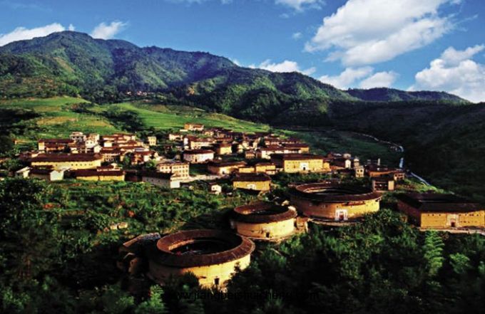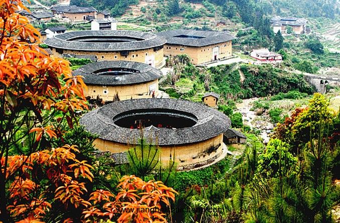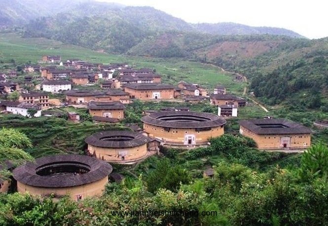 初溪村徐氏三世祖建于明永樂十七年(公元一四一九年),距今五百八十余年,為永定現(xiàn)存圓樓中年代久遠又結(jié)構(gòu)特殊的一座。一般圓樓,小的設(shè)置兩處公共樓梯,大的設(shè)置四處樓梯,底層相通且層層環(huán)廊通達,相互往來,版權(quán)所有山東聊城聊之旅國際旅行社有限公司,轉(zhuǎn)載必究!十分方便。唯獨此樓,按底層每戶從一樓到四樓各自安裝樓梯,各層通道用木板隔開,七十二道樓梯把全樓分割成七十二個獨立的單元。房間、樓梯、隔墻全用杉木材料構(gòu)建,全靠鄰隼頭銜接,不用一枚鐵釘,竟也穿越了近六個世紀的風霜雨雪,與厚達二米的生土墻一起依然挺立。初溪土樓群形成于13世紀初,同樣依山而建,土樓與層層梯田構(gòu)成壯麗景觀,氣勢磅礴恢宏。初溪原名粗溪,意即粗溪,有著粗心大意的含義,由于寓意不好,所以改名--初溪。集慶樓堪稱初溪土樓群的代表,由經(jīng)營紙業(yè)的徐姓人所建,建筑規(guī)模比周遭的要大得多。土樓以隔板分隔成72個單位,與上述的土樓設(shè)計不同。與別處土樓不同的是,樓內(nèi)沒有水井,只能從樓旁的河邊打水,而且僅得一道大門,與其他土樓有3至4道大門不同。從對面山頭的觀光亭能一覽依山而建的初溪土樓群,土樓或大或小,或方或圓,一覽無遺,景象叫人陶醉。 在此后數(shù)百年間陸續(xù)夯造的土樓,所有的樓層都是環(huán)環(huán)相通的。集慶樓這種聚族而居又彼此獨立的模式,在動蕩年代里,既消除單門獨戶的恐懼心理,又避免了一般土樓沒有私密空間過度嘈雜的缺點,實在是兩全其美的創(chuàng)造性設(shè)計。集慶樓的房間、樓梯、隔門全用杉木構(gòu)建,相鄰處全靠隼頭銜接,不用一枚鐵釘,在穿越將近600年的風霜雨雪后,依然與厚達兩米的生土墻一起巍然屹立,顯得古老而不破敗。