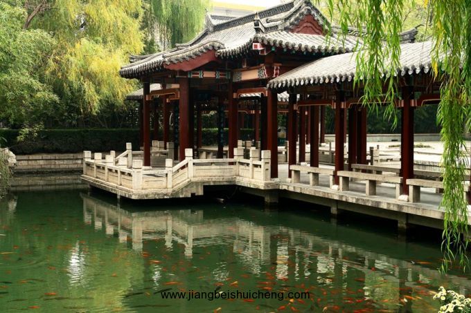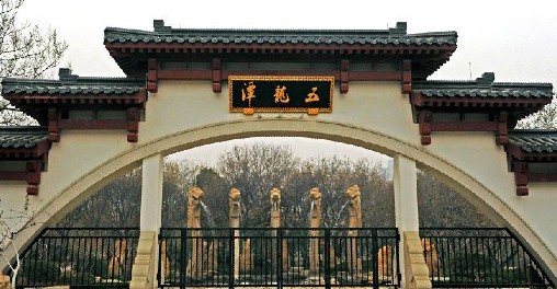 五龍?zhí)叮挥跐?jì)南舊城西門外,洛源橋北,南臨趵突泉,北接。潭周名泉眾多,形成五龍?zhí)度?,為?jì)南四大泉群之一,內(nèi)有泉池二十七處。公園的建園風(fēng)格兼具有南北造園之精華,是以潭池溪港等景觀構(gòu)成,質(zhì)樸野逸為特點(diǎn)的園林水景園。此水域風(fēng)景秀麗,柳絲醮波,鳴禽啾啾,荇藻漂浮,錦魚嬉戲,素有“夾岸桃花,恍若仙境”之美譽(yù),風(fēng)景幽雅獨(dú)具特色。
