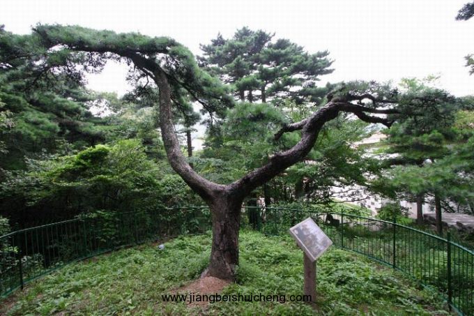 麒麟松位于獅子峰腰,近獅子林精舍。其胸徑50厘米,在樹高l.5米處分作兩干,分別朝東西方向斜展生長(zhǎng),高低錯(cuò)落。高枝如麟角,低枝似麟尾,主干樹皮如麟甲斑斑,酷似麒麟之態(tài)。故名。今人有詩(shī)贊曰:“昂頭翹尾何其神,形同異獸號(hào)麒麟。國(guó)家昌盛呈祥瑞,預(yù)兆山河萬代春?!?