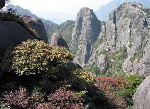 桃花峰位于黃山南端,西連云門峰,與紫石峰隔湯泉溪相望,為36大峰之一,海拔1460米。此峰土質(zhì)肥沃,草木繁盛。早先峰上多桃樹,人稱“十里桃花峰”,至今仍盛開不衰。每年3~4月,桃花山峰麓層層開至峰頂,如同錦霞,分外艷麗。前人曾有詩形容:“花開十萬樹,峰似繹霞披?!被ㄖx之時,滿山紅瓣流入桃花溪,版權(quán)所有,山東聊城聊之旅國際旅行社有限公司,轉(zhuǎn)載必究!名曰“桃花湯”。峰便由此而得名。清黟縣人、雍正間舉人、名士胡與高有詩曰:“山頭桃花開,山中玉女笑。帝鄉(xiāng)無盡春,日日斜陽照?!痹娭袑⑻一ㄊ㈤_和玉女歡笑糅在一起,給桃花峰抹上了一層春色長駐的浪漫色彩。關(guān)于峰上的桃樹為何人所栽,有兩種傳說:一說當年軒轅黃帝來黃山煉丹時,看到桃花峰上缺花少木,乃令眾臣遍栽桃樹,點車上觀之,更能看出它獨臥壑外,不與眾峰相接。故有詩云:“一峰貪枕自離群,萬古山中臥白云。盛世人皆爭貢獻,汝甘壑外不人群?”