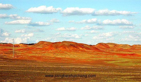 將軍戈壁上一處紅色丘陵區(qū),由數(shù)百個(gè)大小不等的紅色山包組成,總面積大約10平方公里。山體的高度多在20—30米之間,頂部呈平滑圓弧狀,周圍坡度平緩,山包之的洼地也是一片火紅。這些紅色丘陵綿延起伏,形成非常壯觀的地文景觀?;馃降纳襟w由磚紅色和桔黃色的巖石構(gòu)成,色彩艷麗,石質(zhì)堅(jiān)硬,為侏羅系地質(zhì)構(gòu)造。版權(quán)所有,山東聊城聊之旅國際旅行有限公司轉(zhuǎn)載必究!陽光下的火燒山真像一片火海,那些起伏的紅色山頭就像升騰的火焰,你的第一感覺就是仿佛來到了西游記里的火焰山?;馃降膸r石原為泥巖,由于地下的煤層自燃,讓其燒烤成現(xiàn)在的模樣,因而地質(zhì)表面到處散落著被熔變的巖石。這些巖石不但質(zhì)地堅(jiān)硬,而且色彩鮮艷,形狀奇特,具有一定的觀賞價(jià)值。由于火燒山油田的開發(fā),火燒山逐漸被人們所熟知,慕名而來的游客日漸增多,火燒山將成為重要的旅游勝地。