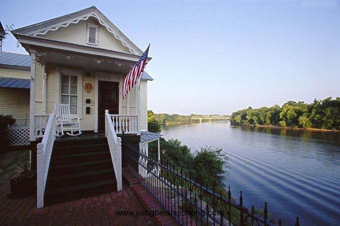 4、橫跨田納西河南北兩岸為波狀平原。平原的下層是石灰?guī)r,有溶蝕地貌。這波狀平原是上述山地的西側(cè)坡。州內(nèi)大河為亞拉巴馬河,由北向南流,長(zhǎng)447公里。有兩大支流由北向南流,在首府蒙哥馬利以北匯合,西為庫(kù)薩河,東為塔拉普薩河。田納西河由東北角入境,成一大曲流,又從州西北角出境。州境北部有許多水壩,使多段水道成為人造湖,風(fēng)光優(yōu)美。