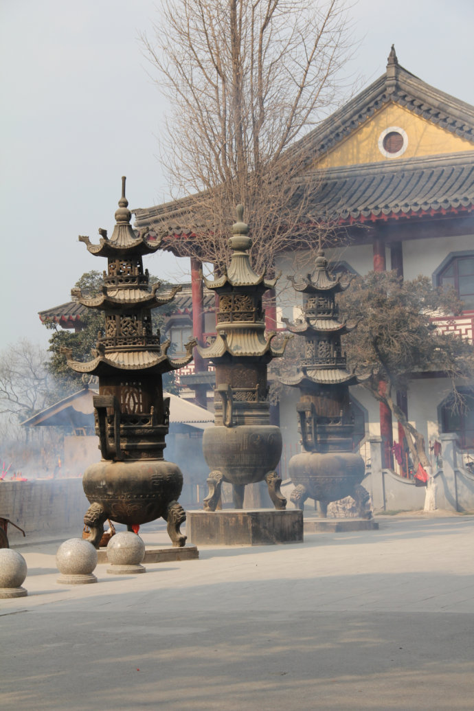 這三個(gè)大香爐說明這個(gè)古寺香火很旺盛