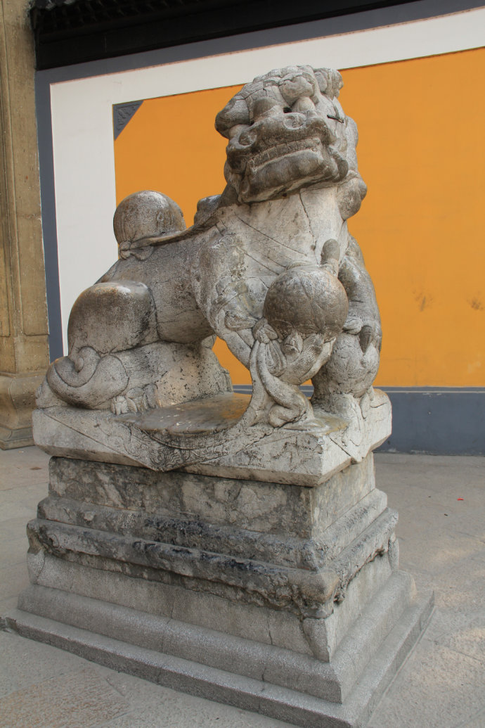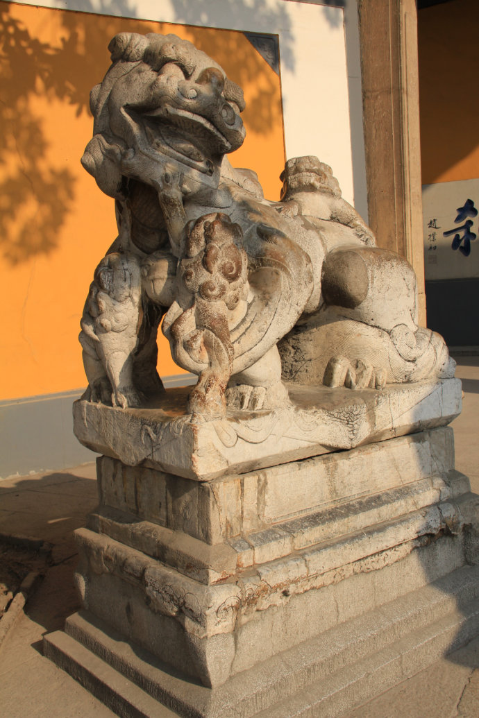 一座古樸的寺廟 一對莊嚴(yán)的獅子