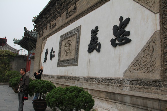 照壁的背后是他書寫的“忠、義、仁、勇”四個大字,成為會館一景,不少游人在此駐足留影紀念