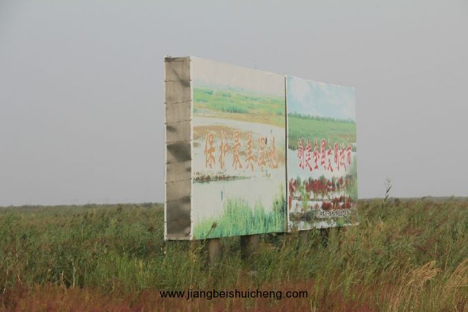 汽車正在駛進(jìn)黃河口生態(tài)旅游區(qū)