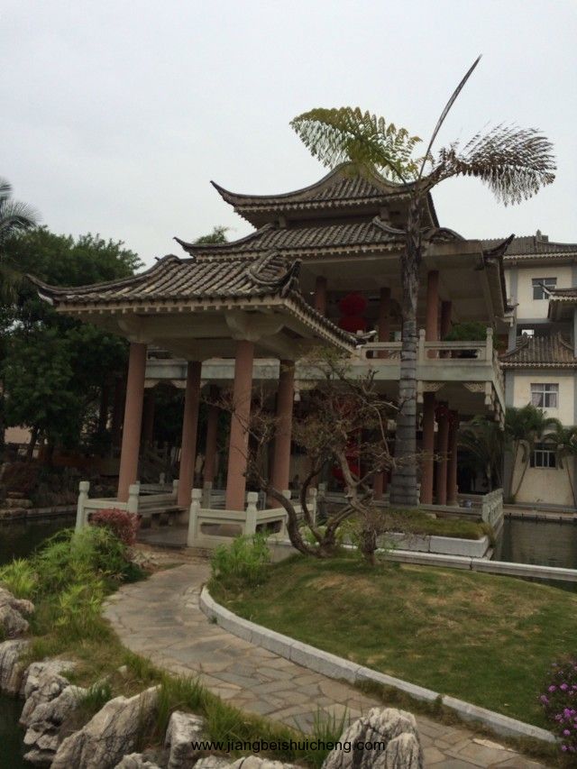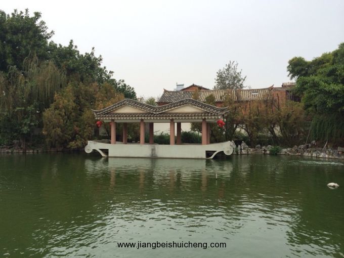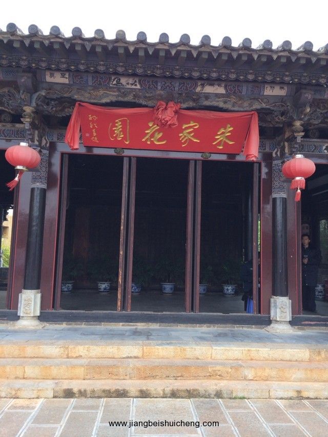 朱家花園坐南朝北,入口為垂花大門。左側(cè)沿街的10間“呆腳樓”與其后的“跑馬轉(zhuǎn)角樓”相連,是當(dāng)年的帳房和資供應(yīng)鋪面等,是朱家經(jīng)營進(jìn)出口貿(mào)易,買賣大錫、洋紗布匹、食鹽、煙土的“朱恒泰”總商號(hào)。右側(cè)前為家族祠堂,后為內(nèi)院。祠堂前有水池,水上有戲臺(tái)、亭閣、庭蔭花木等。水池邊有右欄。