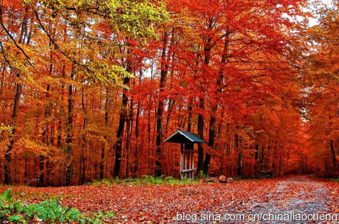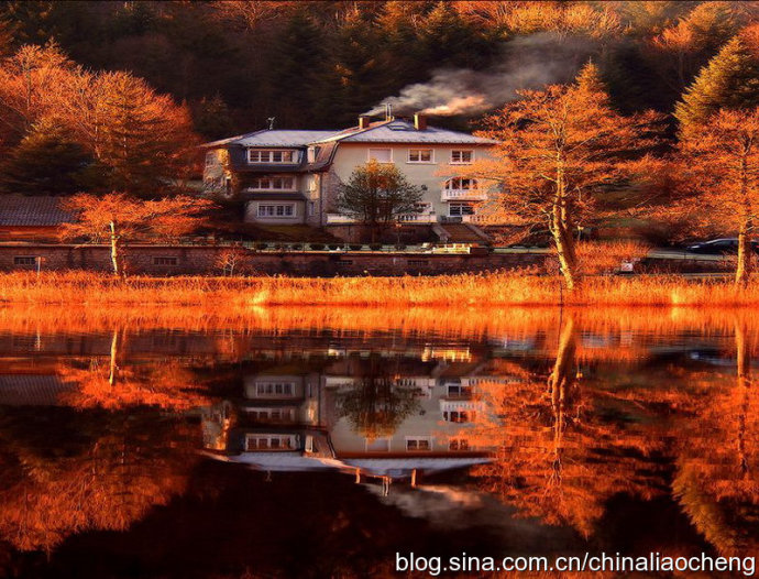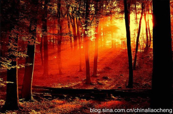 最動(dòng)人是秋林映著落日。那酡紅如醉,襯托著天邊加深的暮色。晚風(fēng)帶著清澈的涼意,隨著暮色浸染,那是一種十分艷麗的凄楚之美,讓你想流幾行感懷身世之淚,卻又被那逐漸淡去的醉紅所懾住,而情愿把奔放的情感凝結(jié)。