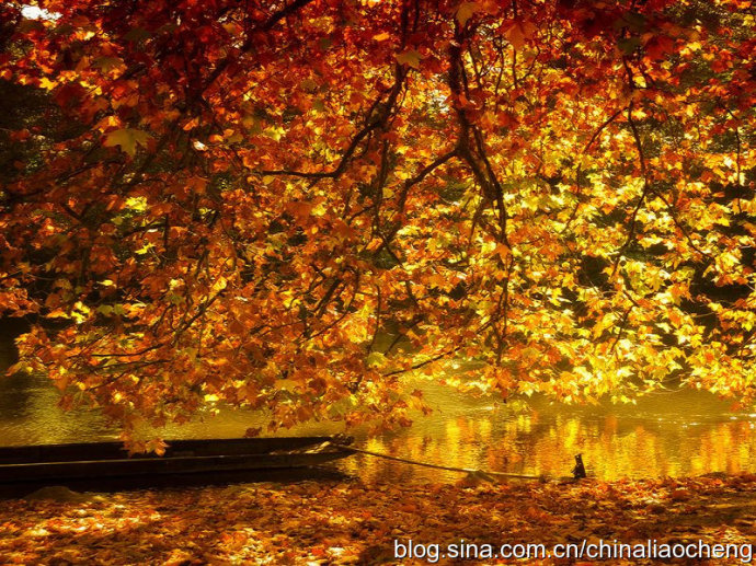 北國(guó)的落葉,渲染出一派多么悲壯的氣氛!落葉染作金黃色,或者竟是朱紅紺赭罷。最初墜落的,也許只是那么一片兩片,像一只兩只斷魂的金蝴蝶。但接著,便有嘩嘩的金紅的陣雨了。接著,便在樹(shù)下鋪出一片金紅的地毯。而在這地毯之上,鐵鑄也似的,豎著光禿禿的疏落的樹(shù)干和枝椏,直刺著高遠(yuǎn)的藍(lán)天和淡云。