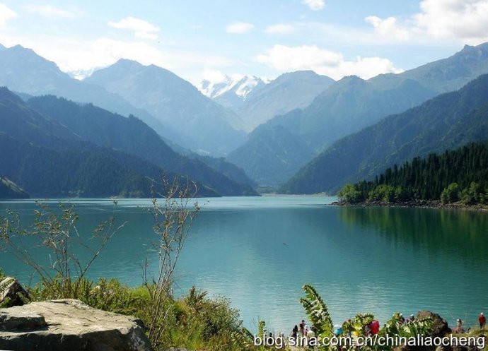 草甸如菌,山花鮮艷。風(fēng)靜波平時湖水似一池翡翠,隨著天氣的變化又更換著不同的色調(diào),自晨至夜換變著風(fēng)采。每當(dāng)云霧繚繞,雪峰、春山若隱若現(xiàn),恍若隔世。七八月份雨后清晨登上