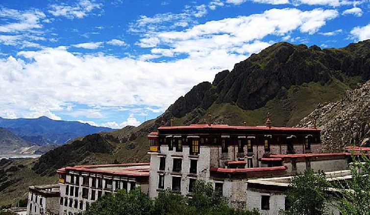 樓高3層,平頂宮堡式建筑,恢宏壯麗。殿內(nèi)供有藏傳佛教格魯派創(chuàng)始人宗喀巴大師等人佛像,陳設(shè)豪華,供器甚多。明崇禎十五年(1642年),和碩特蒙古首領(lǐng)固始汗支持達(dá)賴五世打敗藏巴汗后,建立了格魯派統(tǒng)治政權(quán),其政權(quán)機(jī)構(gòu)即設(shè)于此。直到清順治五年(1648年)布達(dá)拉宮白宮建成,達(dá)賴五世由該處移居布達(dá)拉宮,政權(quán)機(jī)構(gòu)也隨著轉(zhuǎn)移。后來,把格魯派統(tǒng)治的西藏地方政權(quán)統(tǒng)稱為甘丹頗章政權(quán)。