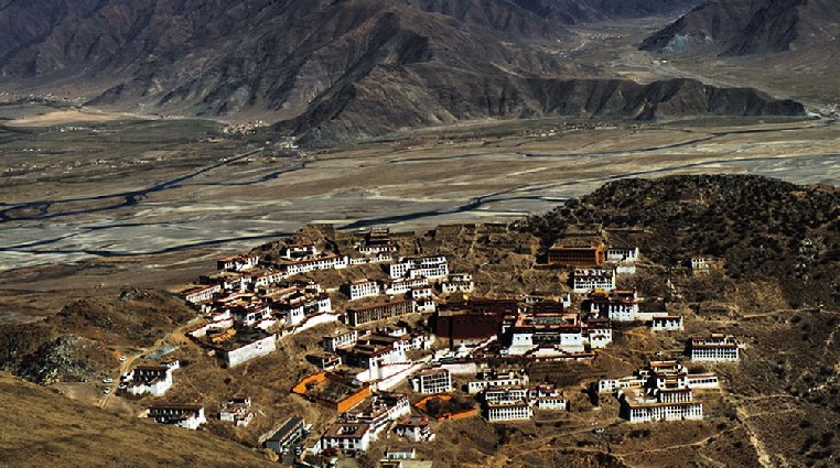甘丹寺位于拉薩達(dá)孜縣境內(nèi)拉薩河南岸海拔3800米的旺波日山上,距拉薩57公里。旺波日山猶如一頭臥伏的巨象,馱載著布滿山坳、規(guī)模龐大的建筑群,充分體現(xiàn)出傳統(tǒng)藏傳佛教寺院建筑因地制宜,寺廟傍山而立,群樓重疊,巍峨壯觀。整座建筑群由佛殿、喇章宮殿、僧院札倉和米村及其附屬建筑單元組成。