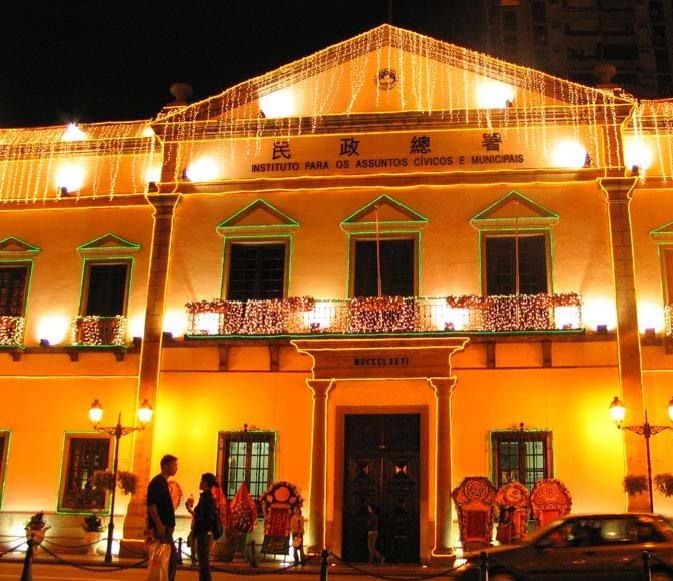 市政廳是澳門最有代表性的建筑,大門就在友誼大馬路上。內(nèi)部十分寧靜莊重,給人以與世隔絕的感覺,內(nèi)墻貼有葡萄牙的藍(lán)白瓷磚,花園內(nèi)繁花叢生。市政廳極為雄偉,現(xiàn)為澳門特區(qū)政府所在地。