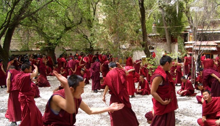 辯經(jīng),是一種佛學(xué)知識(shí)的討論,也可以說是喇嘛們的一種學(xué)習(xí)方式。色拉寺的僧人們每天有一次辨經(jīng)活動(dòng)。這是一種富于挑戰(zhàn)性的辯論,雙方唇槍舌劍,言詞激烈,辯論者往往借助于各種手勢(shì)來增強(qiáng)辯論的力度,他們或擊掌催促對(duì)方盡快回答問題,或拉動(dòng)佛珠表示借助佛的力量來戰(zhàn)勝對(duì)方。辯論場(chǎng)上的熱烈氣氛使游人也深受感染。