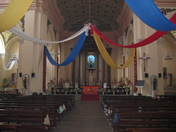 建于一九三八年,其設(shè)計(jì)主要采取澳門(mén)主要教堂的巴羅克式風(fēng)格。圣堂外墻以奶白色為主,還有橢圓形的窗戶(hù)及鐘樓。