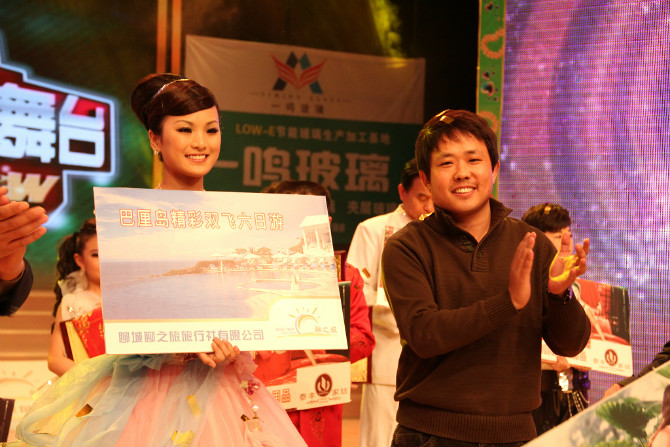 2月18日下午,聊城本土大型平民選秀電視節(jié)目《我要秀舞臺》2011年度總決賽在聊城電視臺演播大廳落下帷幕,10名選手經(jīng)過兩輪激烈角逐,最終評出冠亞季軍各一名。來自部隊的文藝女兵任歡歡以近乎專業(yè)的歌唱表演脫穎而出,獲得年度總冠軍。年僅11歲的小學生王巖旭以精彩的山東快板獲得亞軍。來自臨清的農(nóng)民歌手姬生飛雖然雙目失明,但仍憑借自己的努力和實力獲得季軍。冠軍任歡歡獲得了由聊城聊之旅旅行社有限公司贊助的1等獎:巴厘島精彩雙飛六日游,董事長劉寶平參加了頒獎!