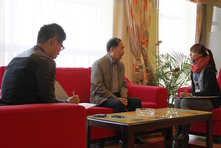 陳會(huì)長(zhǎng)接受協(xié)會(huì)大學(xué)生記者團(tuán)的采訪