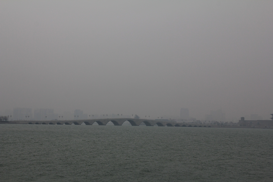 對(duì)了,是東昌大橋。東昌大橋全長(zhǎng)322米,橋面凈寬15米。上部結(jié)構(gòu)為石砌拱橋,共21孔,象征著跨入21世紀(jì),所以又稱(chēng)世紀(jì)拱橋。
