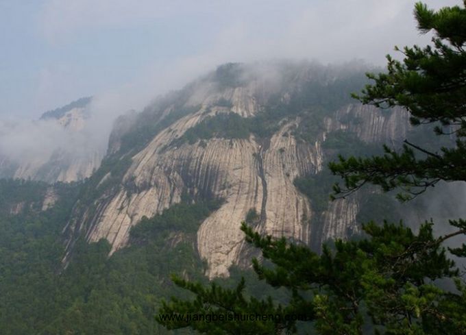 玉筍雄峰。和跑馬梁一樣,因為巖株——一種不和諧的侵入巖體,上升的巖漿沖擊覆蓋其上的地層,地層便向上隆起,形成圓頂狀,當(dāng)圓頂狀之上的地層被剝蝕,即形成的圓形山頂。形狀象玉筍,又如常娥奔月,且歌且舞,靈秀優(yōu)美。