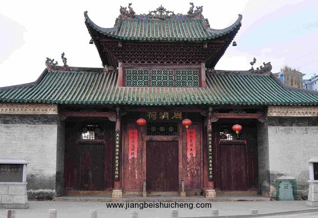 周渭祠即周王廟或嘉應(yīng)廟,是祭祀宋御史周渭的祀廟。位于恭城縣城東,建于明成化十四年(1478年),清雍正元年(1723年)重修。周渭祠占地面積1600多平方米,建筑面積1040平方米,由戲臺(毀于三十年)、門樓、大殿、后殿及左右?guī)拷M成?,F(xiàn)為廣西壯族自治區(qū)重點文物保護單位。
