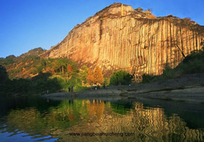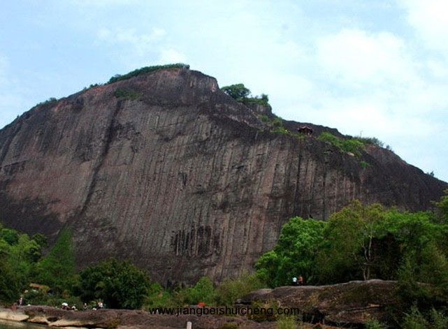 仙掌峰,在六曲,巨石渾然一體,上有痕跡如掌印,因名。又似匹匹白練自峰頂垂下,故又名曬布巖。每當(dāng)夕陽西斜,奇峰倒映水中,如萬丈垂練隨風(fēng)飄灑,極富神韻,此峰有許多景點(diǎn),被辟為天游景區(qū)。傳說:曬布巖半壁有幾道深深的痕跡,如同紅潤的掌印,相傳這是仙人留下的。在很久以前,九重天上的織婦女,每天都要背著錦囊,唱著歌兒去采集五彩云錦,配上一縷縷金絲銀線,織成一匹匹綾羅綢緞,獻(xiàn)給王母娘娘。一天早晨,負(fù)責(zé)挑擔(dān)送布的赤腳大仙,挑著云錦來到武夷山,被神奇的碧水丹山迷住,便放下?lián)尤ビ瓮?。等他聽到天宮的擊鼓聲時(shí),才想起錦擔(dān),一看糟了,版權(quán)所有山東聊城聊之旅國際旅行社有限公司,轉(zhuǎn)載必究!綾羅綢緞已被晨露打濕。于是,他把一匹匹錦抖天,曬在巖壁上,一直垂到六曲溪邊。大仙用手將錦緞?chuàng)岬闷狡秸?,沒想到紅日高照到中了午,錦緞被曬化了,溶進(jìn)了光滑的巖壁里,就連大仙按云錦的手印也留在了巖壁上。