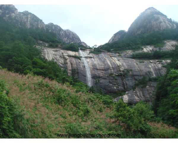 峰的西側(cè)有布水源,所出山泉順千尺懸?guī)r而下,形成百丈瀑布(又稱“百丈泉”),瀑下為清潭和百丈潭,潭水流人逍遙溪,峰以潭而得名。清代太平縣令賈有福有詩(shī)云:“凈逼清霄徹底看,碧琉璃下雪翻瀾。重巖細(xì)細(xì)花如鏡,縱近溫泉骨亦寒?!?