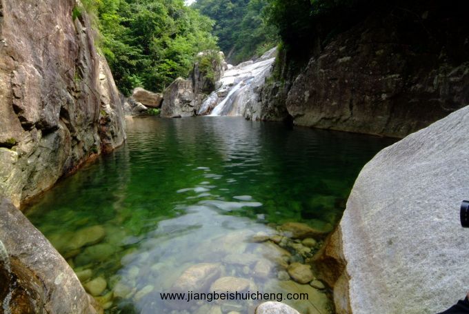 從瀉玉瀑,順蜿蜒而上的步道,經(jīng)水晶瀑便來到鯢魚(又名娃娃魚)棲息的鯢魚潭(鯢魚潭實為弓瀑沖擊成)。