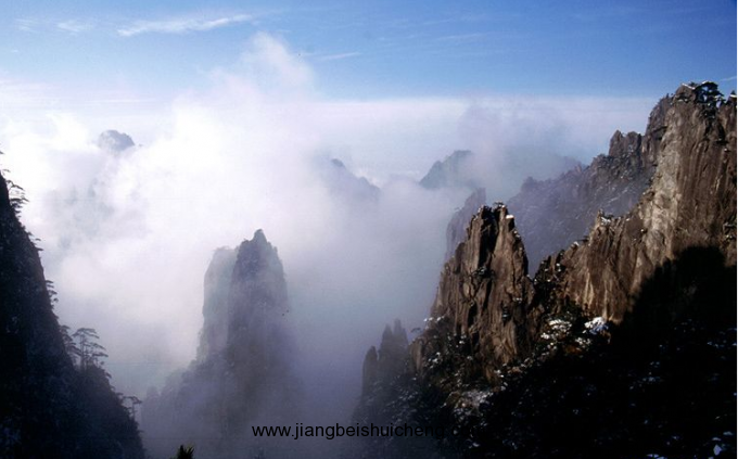 仙女繡花在安徽省黃山的白云景區(qū),位于排云亭前,向左眺望,遠處石床峰上有一巧石似少女,面前有一奇松,如繡花臺繃,美其名“仙女繡花”。