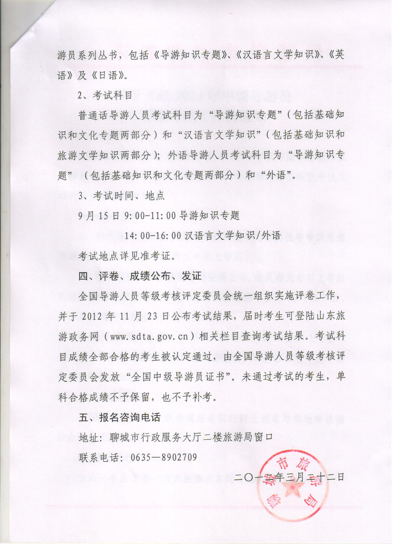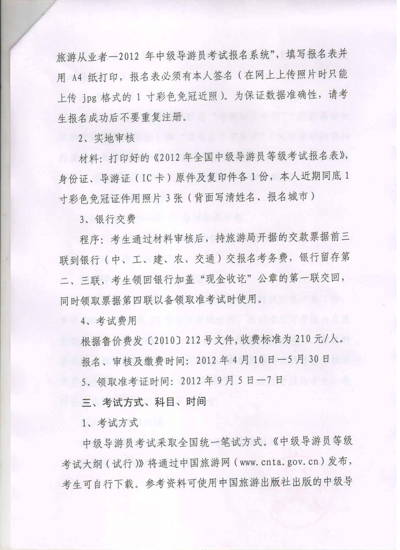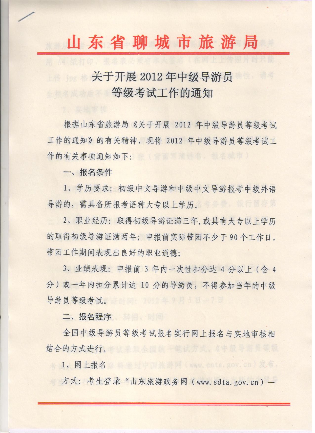 2012年中級導游員等級考試通知