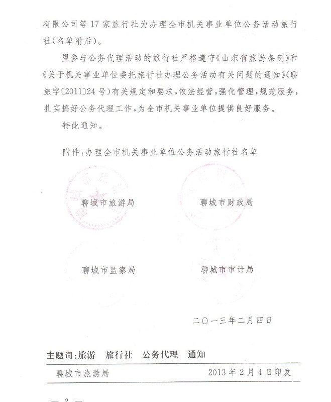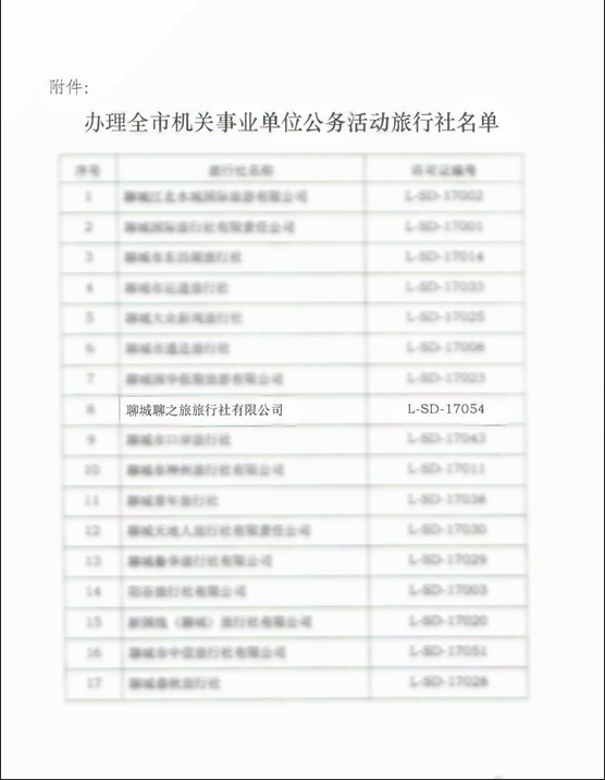 【網(wǎng)宣部】熱烈祝賀聊城聊之旅旅行社有限公司成為聊城市機(jī)關(guān)事業(yè)單位公務(wù)活動(dòng)旅行社!