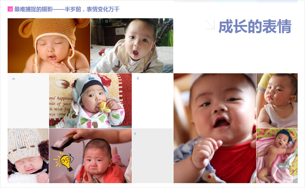 1、決定拍攝間隔:每周甚至每日一張當(dāng)然很有趣,但這涉及太多工作,一年要拍攝52張指定的照片甚至要365張,并非易事。由零到兩歲,每月一張看來(lái)間隔上比較理想,看到分別,又不至于太疏落。