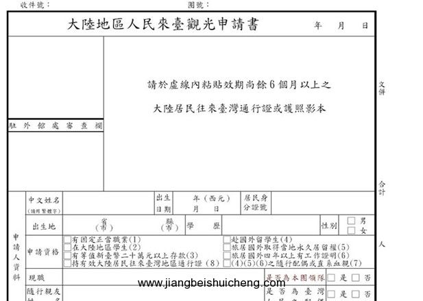 三、將以下資料遞交至旅行社、由旅行社在臺(tái)灣為游客申請(qǐng)《臺(tái)灣地區(qū)入出境許可證》