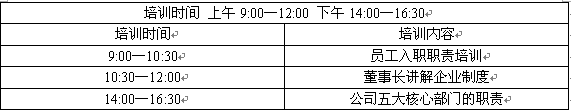 培訓(xùn)時(shí)間一天,內(nèi)容包括:辦公室、財(cái)務(wù)、網(wǎng)絡(luò)、客服、業(yè)務(wù)(計(jì)調(diào)、前臺(tái)、導(dǎo)游)培訓(xùn),企業(yè)制度培訓(xùn)等。上午是《聊之旅員工入職職責(zé)》的培訓(xùn),從員工試用期開始到正式簽訂工作協(xié)議,對(duì)職業(yè)準(zhǔn)則以及員工行為準(zhǔn)則都進(jìn)行了詳細(xì)地說明,員工所關(guān)心的的薪酬問題、績(jī)效問題也在文件中提及。