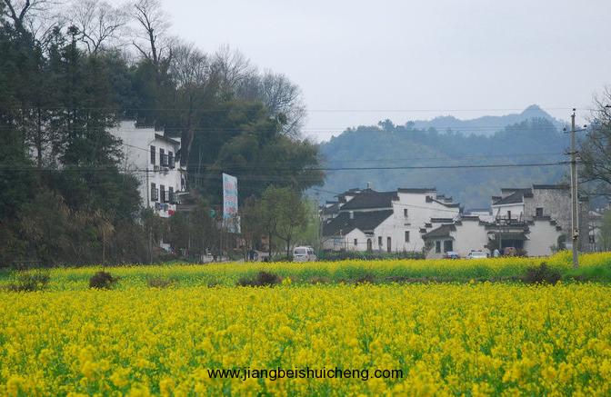 江西婺源的油菜花就是這樣一種意韻。江西婺源被譽為"中國最美的鄉(xiāng)村",婺源最美的季節(jié)是油菜花開放的時候。余邵詩云:“油菜花開滿地黃,叢間蝶舞蜜蜂忙;清風吹拂金波涌,飄溢醉人濃郁香”。油菜花成為吸引觀光的最佳綠色資源,花粉中含有豐富的花蜜,常引來彩蝶與蜜蜂飛舞于花間,由此平添了鄉(xiāng)間田園繽紛的景致。三月中下旬,棵棵粉紅的桃花、潔白的梨花點綴在漫山遍野金黃色的油菜花中,掩映著白墻灰瓦的徽派建筑,使得每一個逃離紛繁城市的人都能找到歸宿。